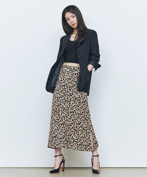 26SS 레오파드 텐션 슬릿 스커트