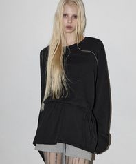 Back Tie Slit Slub Top Black