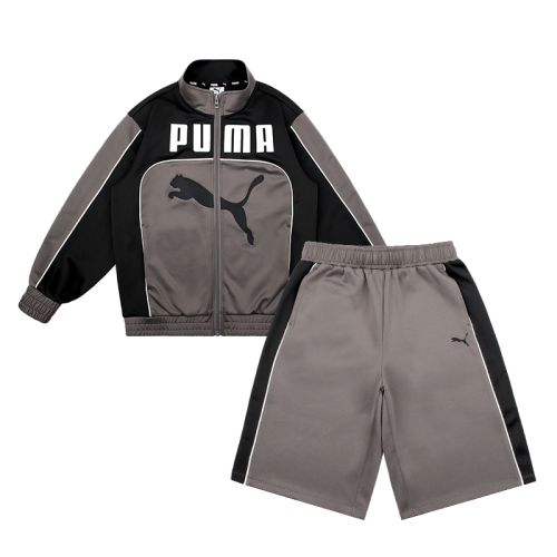 상하의에 컬러블럭, 배색 파이핑 라인으로 디테일을 더하였으며 푸마 그래픽을 매치하여 포인트를 더하였습니다.