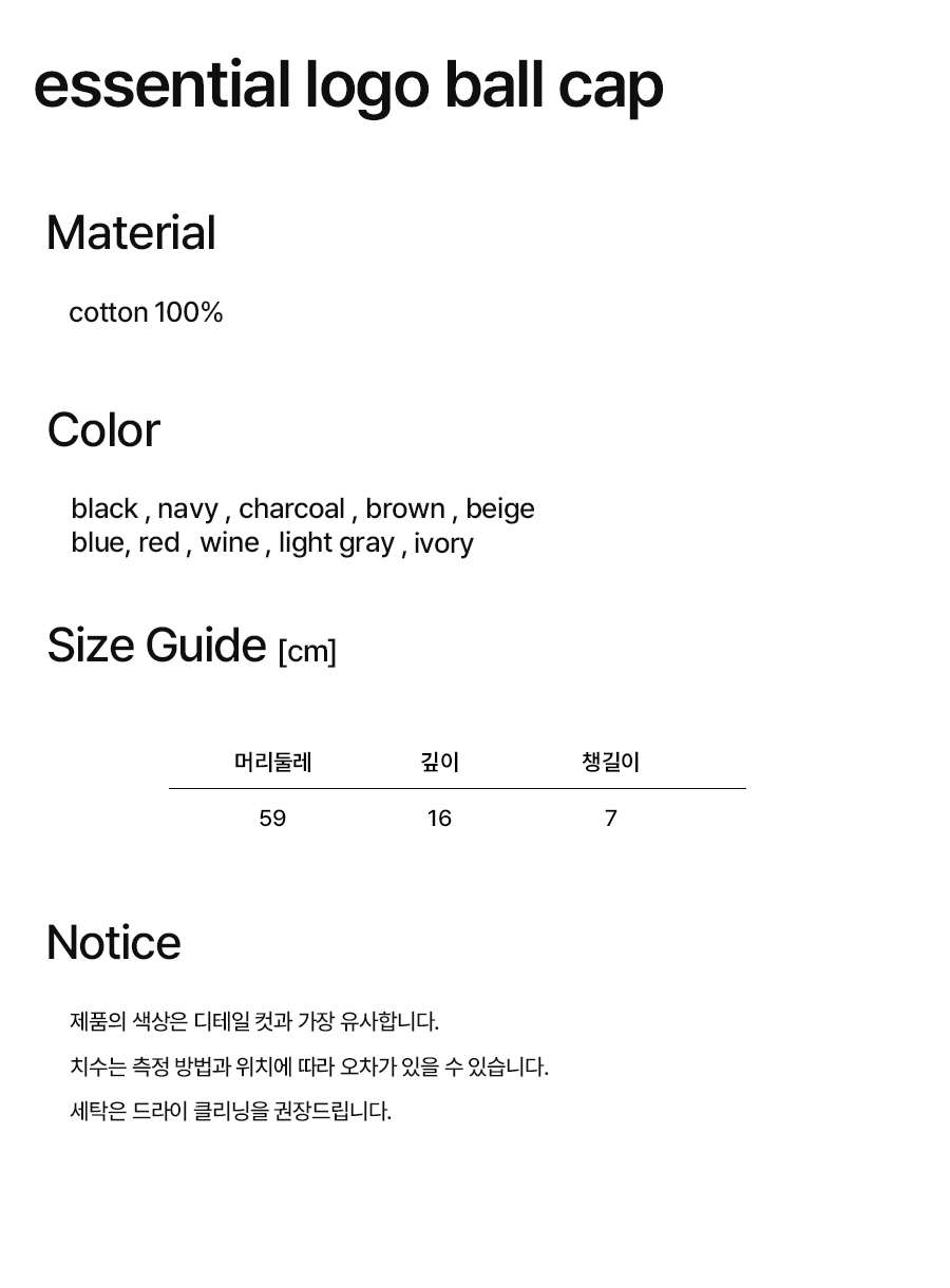 NOI1845 에센셜 로고 볼캡 (10color)