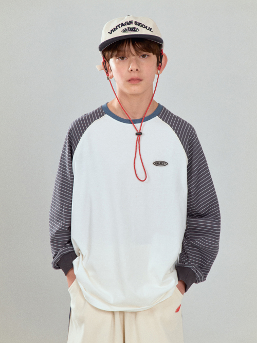 A STRIPED COLOR-BLOCK RAGLAN TEE NAVY