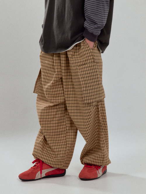 CHECK CARGO PANTS MUSTARD