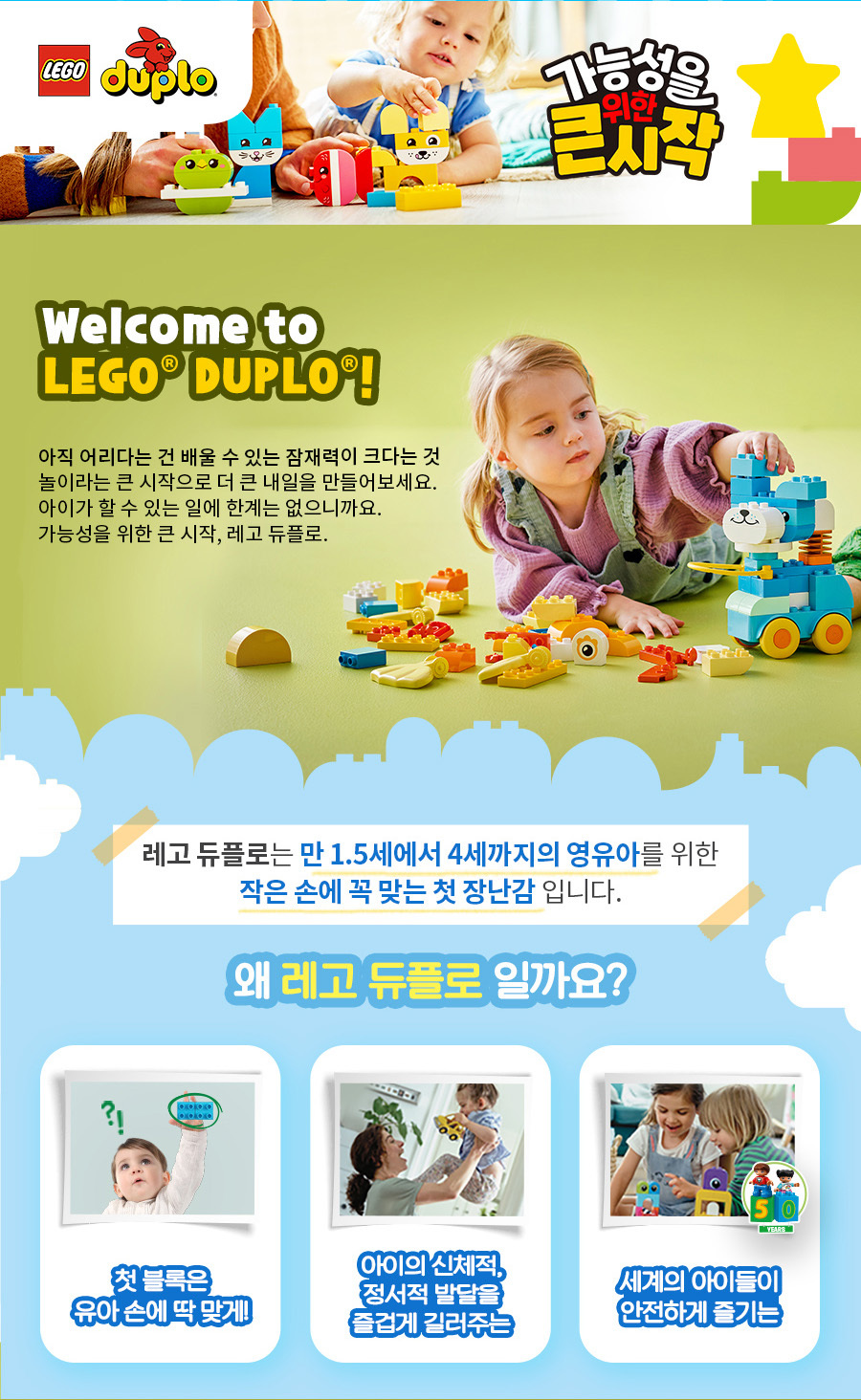 레고(LEGO)는 우리의 미래인 아이들이 놀이를 통해 창의적으로 성장할 수 있도록 끊임없이 연구하는 덴마크의 완구 기업 브랜드입니다.