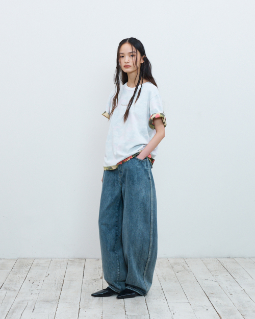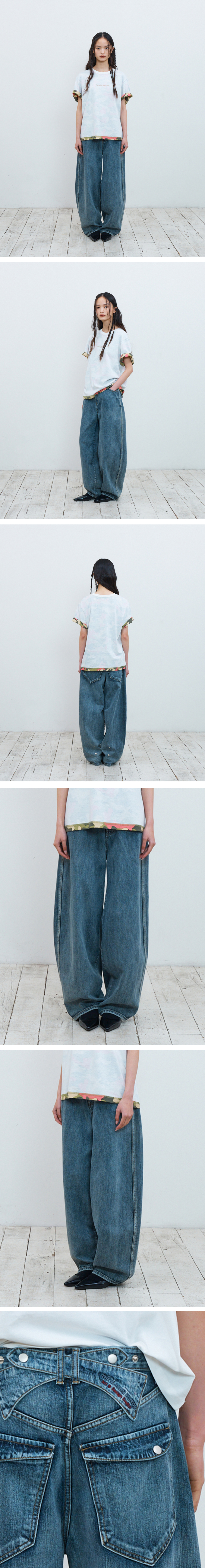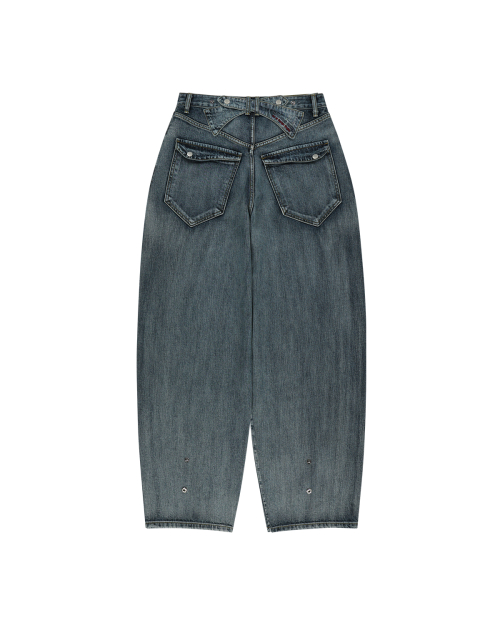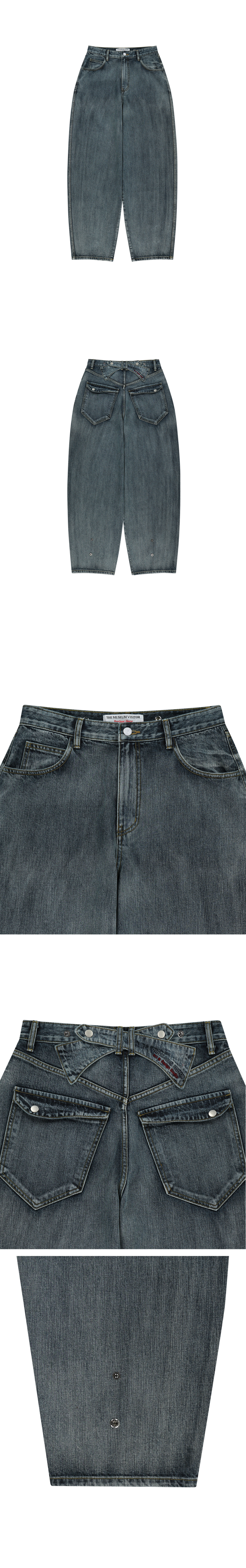 CROSS BELT WASHED DENIM PANTS (BLUE)