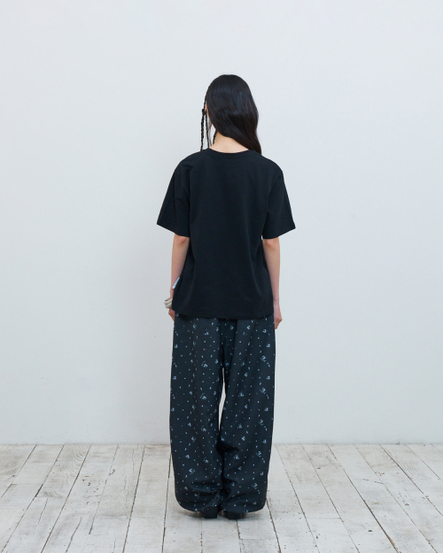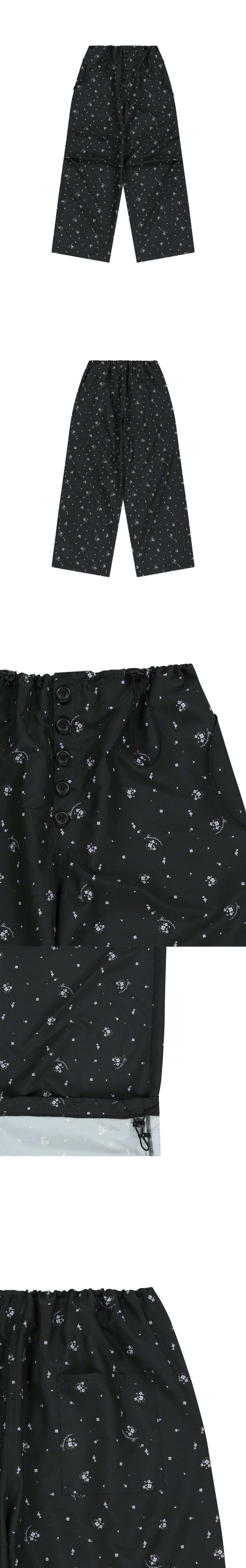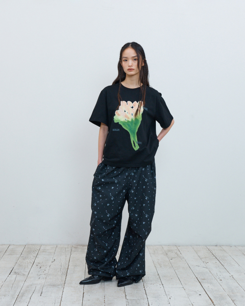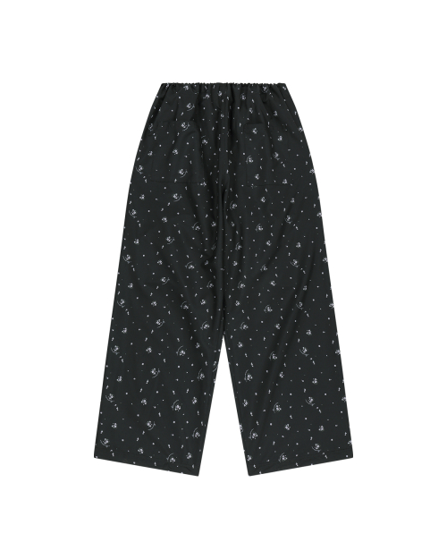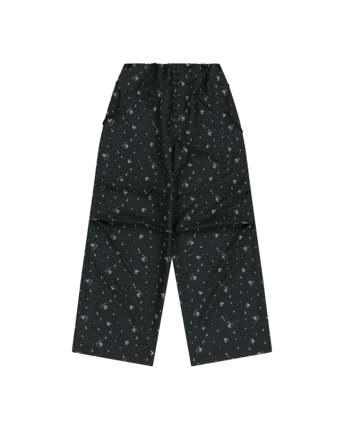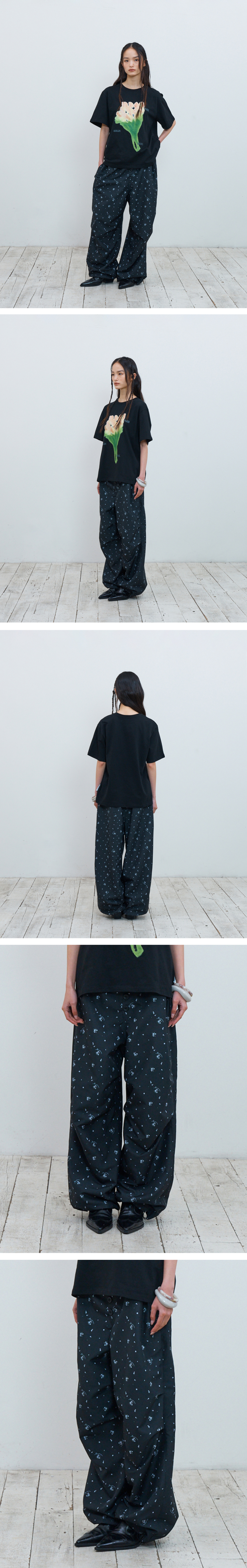W FLORAL PARACHUTE WIDE PANTS (BLACK)