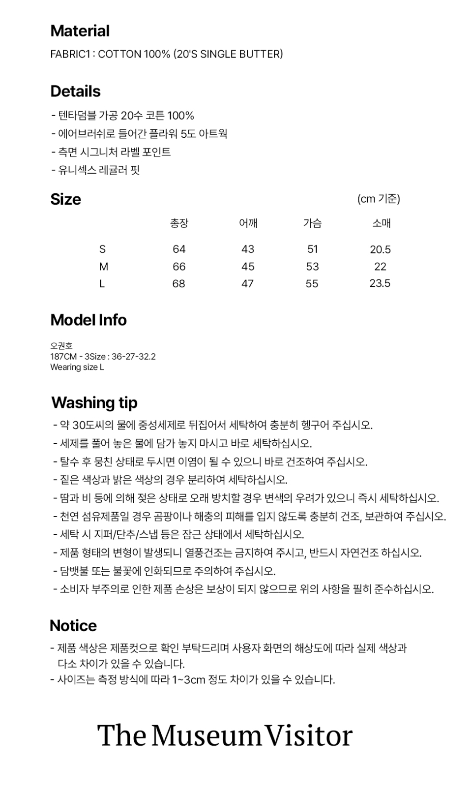 더뮤지엄비지터(THE MUSEUM VISITOR)는 2016년 디렉터 박문수의 독일 베를린 여정에서부터 시작된 브랜드입니다. 거리와 사람들에게서 느낀 자유와 사랑, 행복, 예술이 담긴 도시에서 받은 영감을 많은 이들에게 전하고자 합니다. 주로 꽃과 하트, 자연, 아이들이 디자인적 요소로 나타나며, 수작업이 가미된 차별적인 디자인 덕에 많은 마니아층의 사랑을 받고 있습니다.