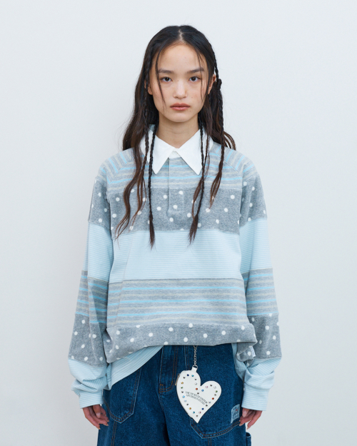 DOT PATCHWORK PK LONG SLEEVE (SKY BLUE)