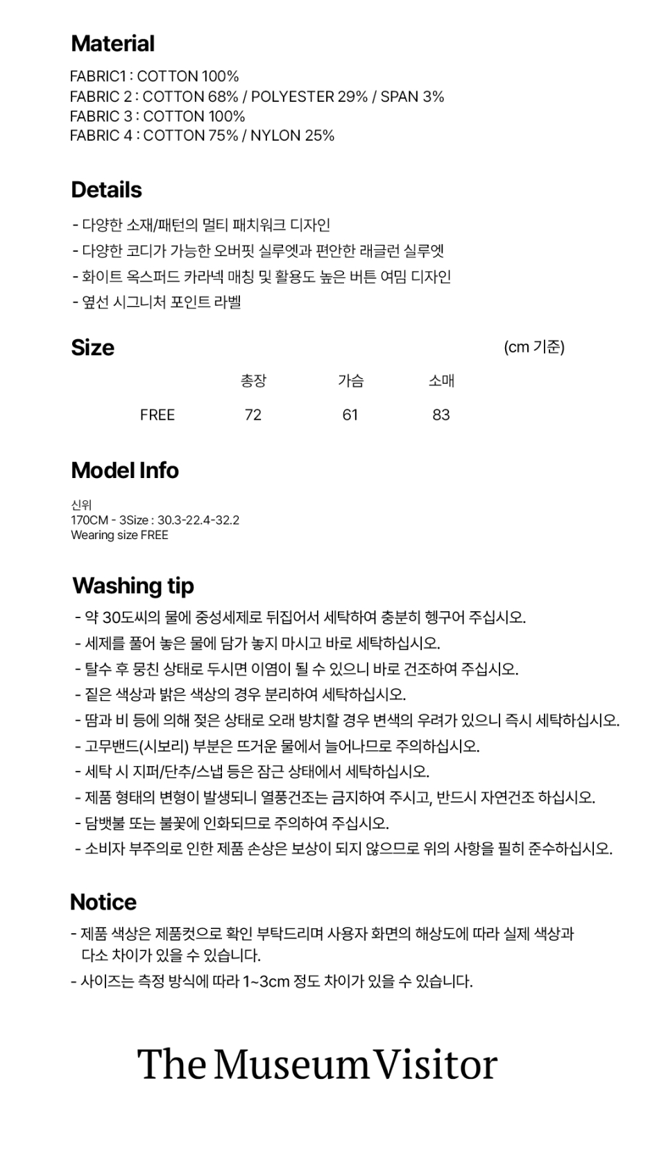 더뮤지엄비지터(THE MUSEUM VISITOR)는 2016년 디렉터 박문수의 독일 베를린 여정에서부터 시작된 브랜드입니다. 거리와 사람들에게서 느낀 자유와 사랑, 행복, 예술이 담긴 도시에서 받은 영감을 많은 이들에게 전하고자 합니다. 주로 꽃과 하트, 자연, 아이들이 디자인적 요소로 나타나며, 수작업이 가미된 차별적인 디자인 덕에 많은 마니아층의 사랑을 받고 있습니다.