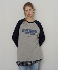 Raglan Campus Logo Long Top - Grey(Navy)