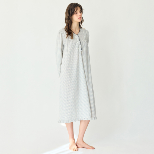 헤이즐 체크 여성 홈웨어 원피스 잠옷