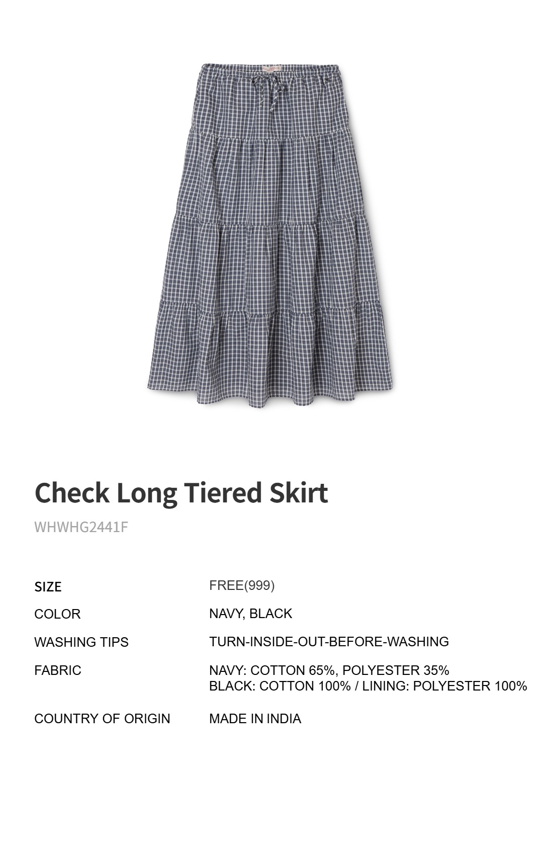Check Long Tiered Skirt / WHWHG2441F