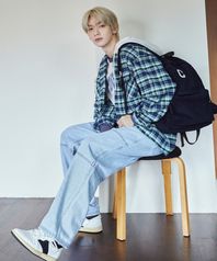 [수빈 착용] 링사 세미와이드 워크 데님 팬츠 블루