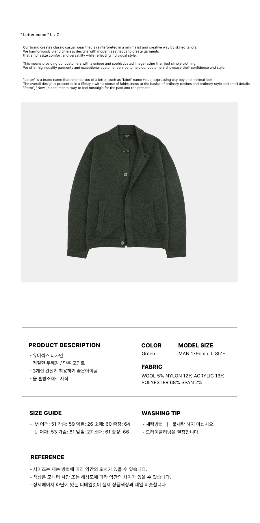 레테르코모(LETTERCOMO)는 새로움(New)과 과거(Retro)를 다양한 표현으로 즐길수 있는 이지와 내추럴을 추구하는 브랜드입니다. 과거와 현재의 향수를 느낄 수 있는 레테르만의 감성있는 옷을 만듭니다.
