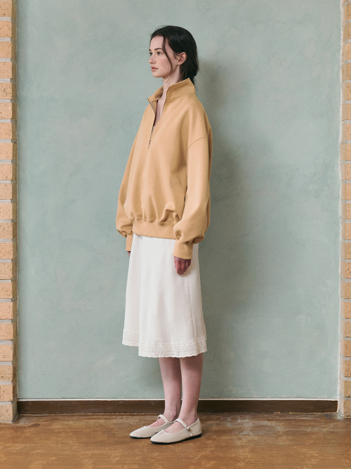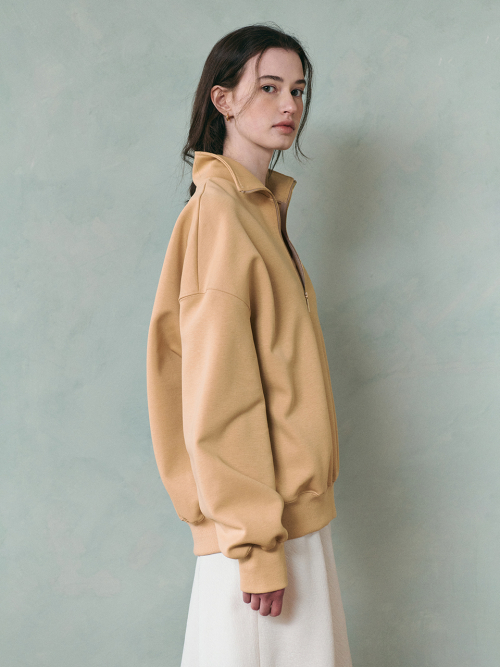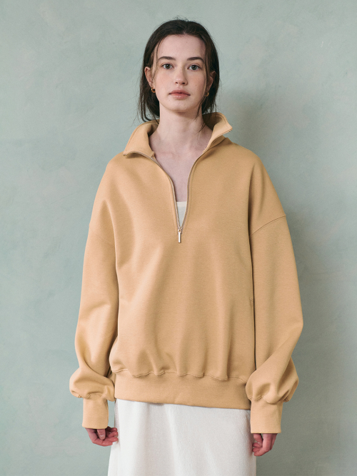 BELLY highneck half zip-up sweatshirt_BUTTER BEIGE