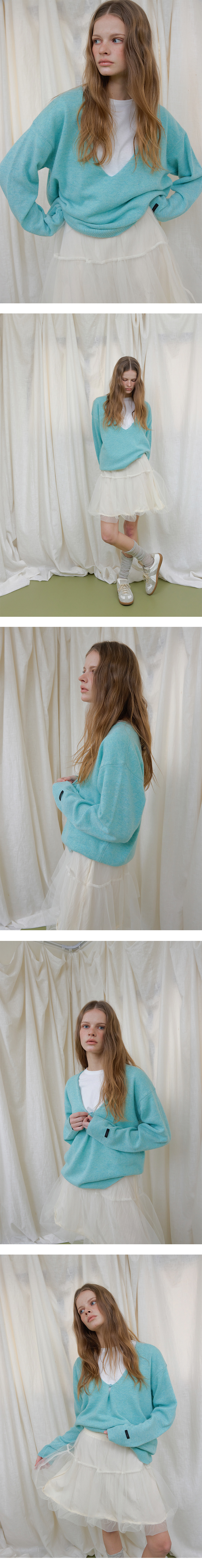 WOOL V-NECK KNIT (BLUE)