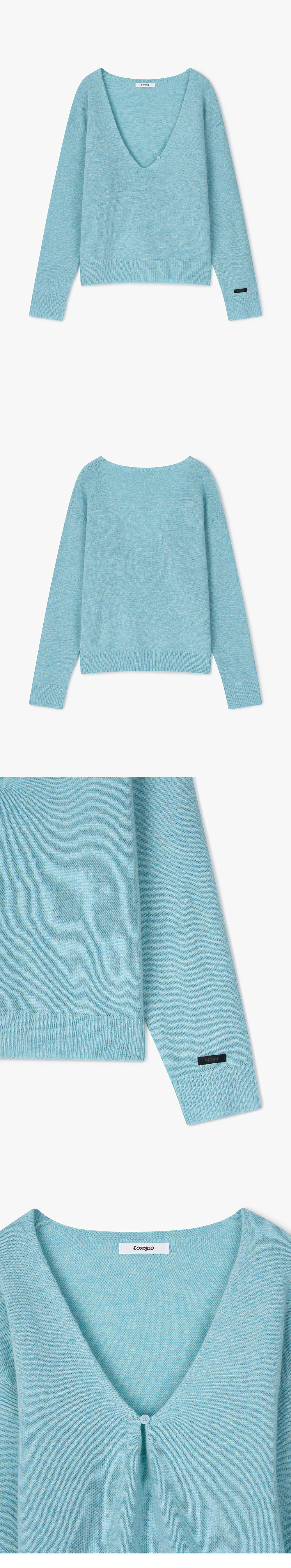 WOOL DEEP V-NECK BUTTON PULLOVER KNIT (SKY BLUE)