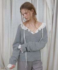 [지구, 소라 PICK] WOOL DEEP V-NECK BUTTON PULLOVER KNIT (GRAY)