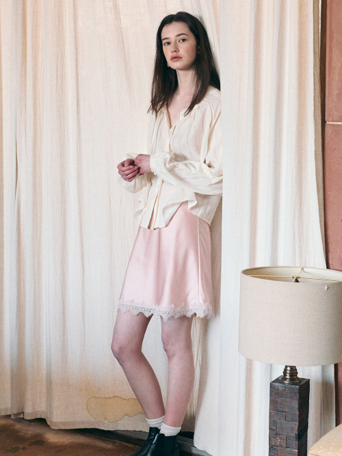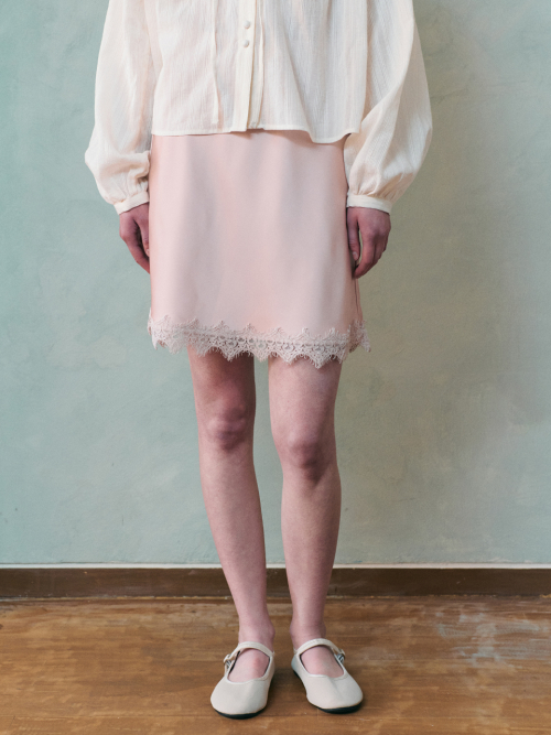 ARIEL satin lace mini skirt_PINK
