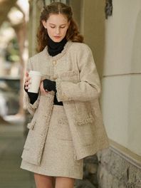 TERESA woolen tweed quilting skirt_OATMEAL