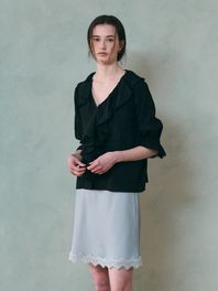 ARIEL satin lace mini skirt_DUSTY BLUE