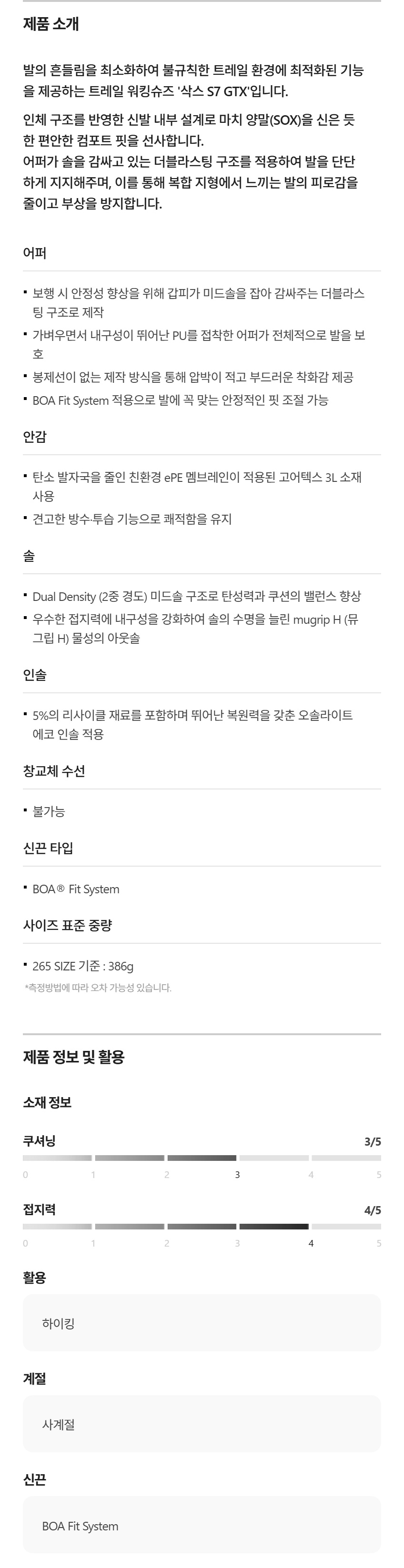 남녀공용 트레일 워킹 슈즈 삭스 S 7 GTX FE4CX26200BLK