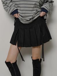 RIBBON PLEATS MINI SKIRT (BLACK)