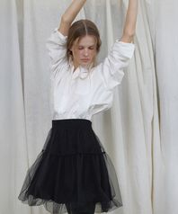 BALLOON BANDING MESH LAYERED MINI SKIRT (CREAM)