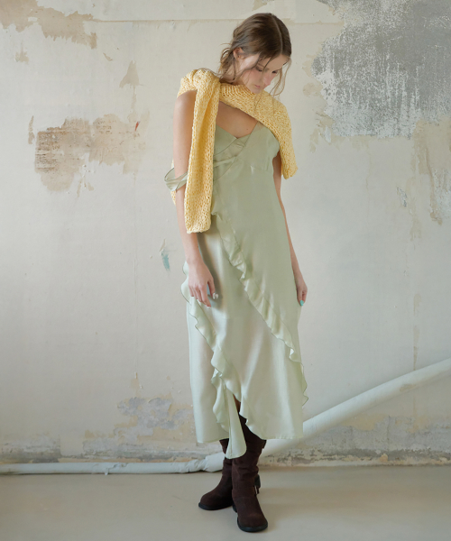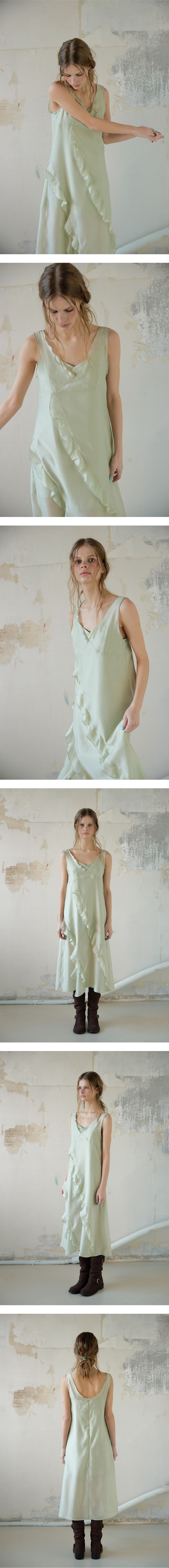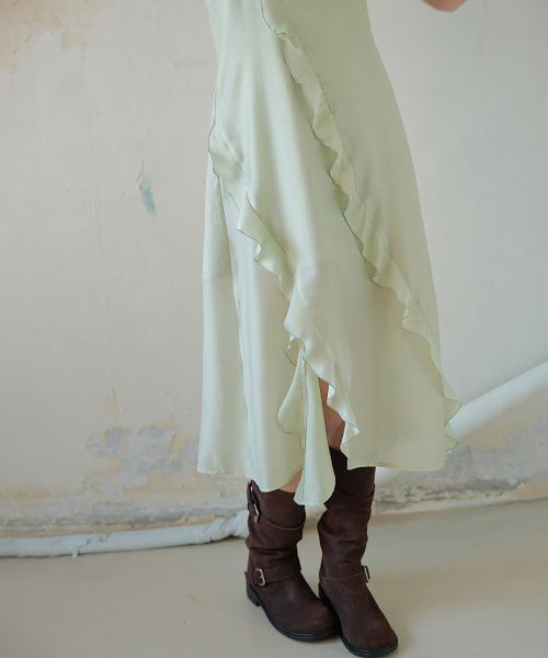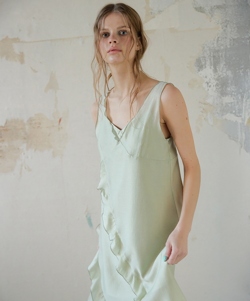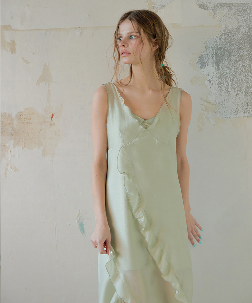 RUFFLE LACE SLEEVELESS CAMI TOP LAYERED DRESS (MINT)