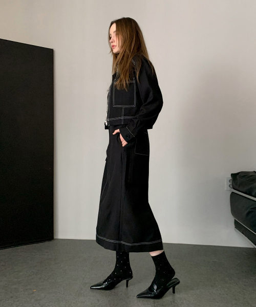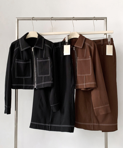 [SET] Stitch Zip-Up Jacket + Long Skirt Set-up (2colors)