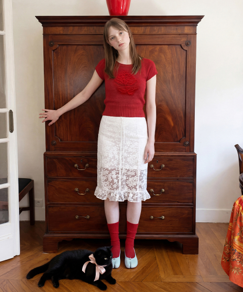 Flower Raglan Knit (Red)