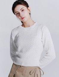 우먼즈 크루넥 미니케이블 크롭 니트 화이트(FCD1KT210W)
