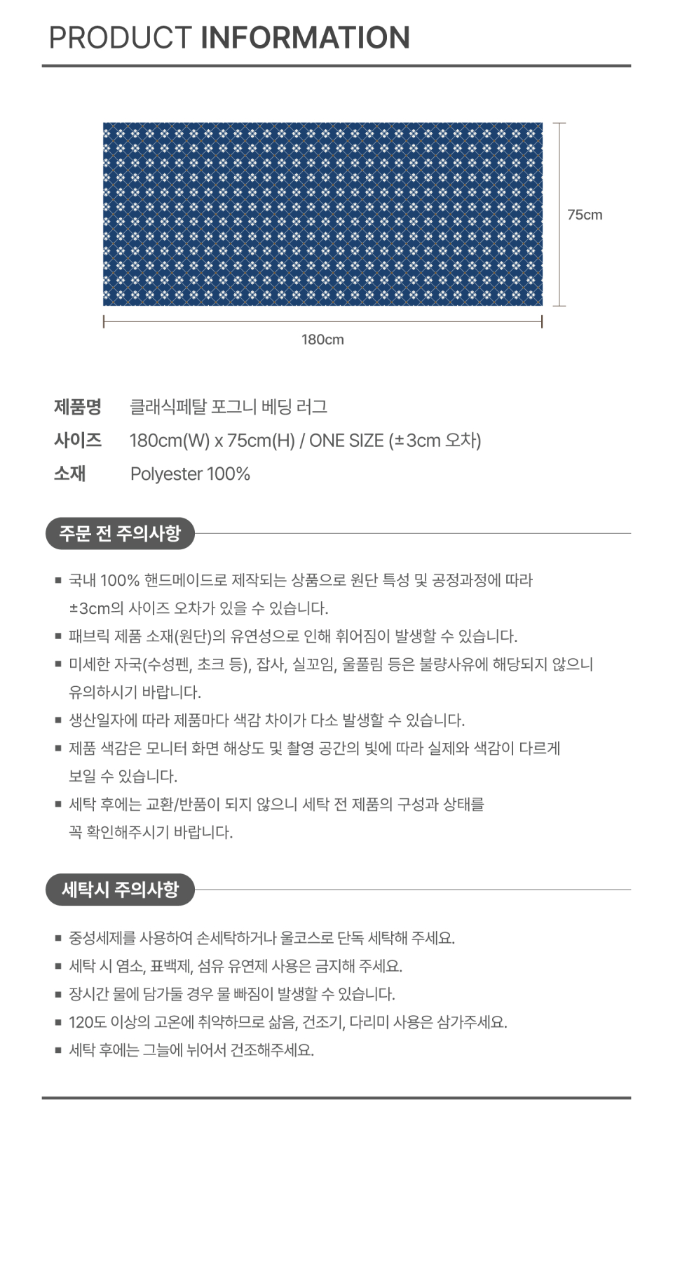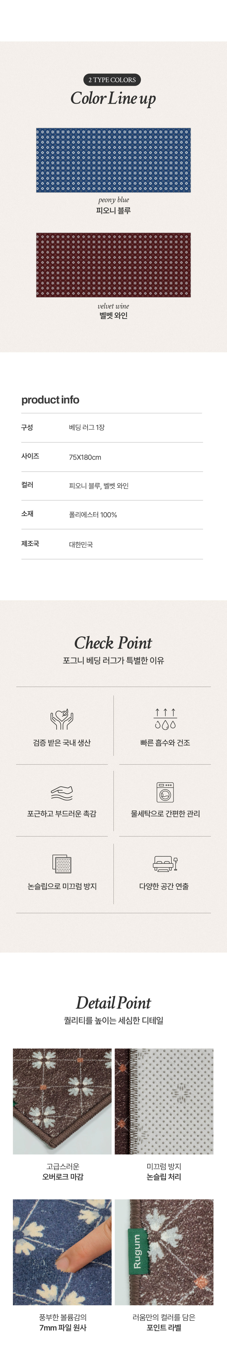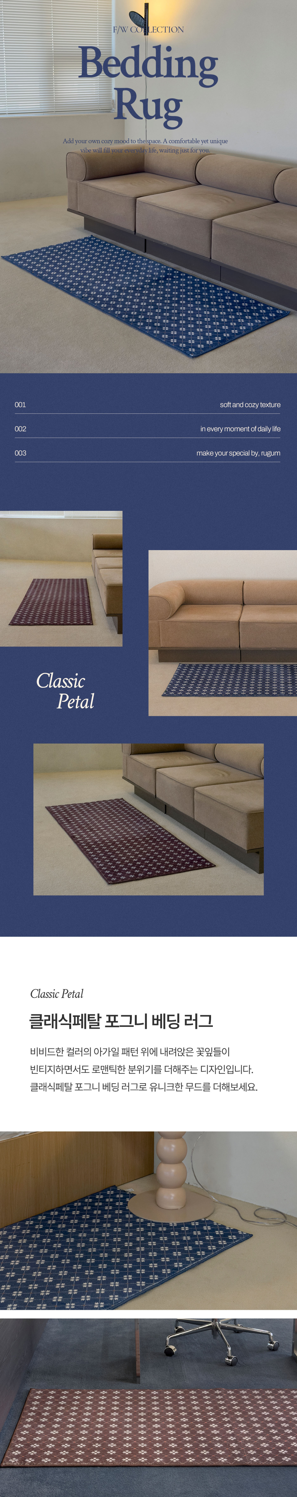 클래식페탈 포그니 베딩 러그 침대 미니러그