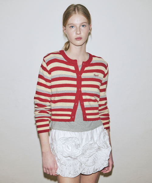 Stripe Crop Cardigan (Red)