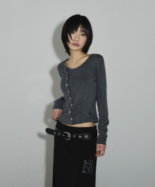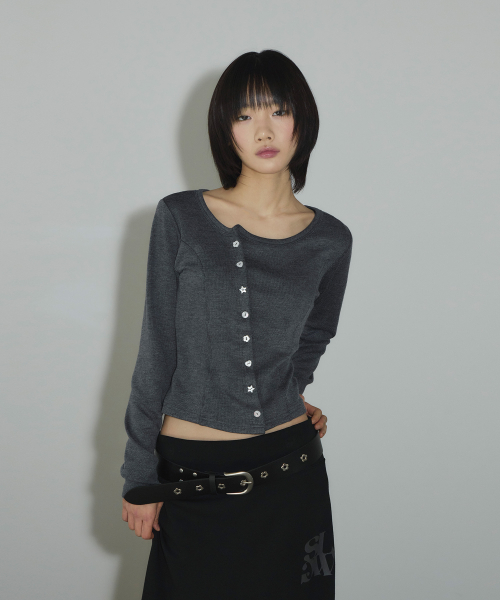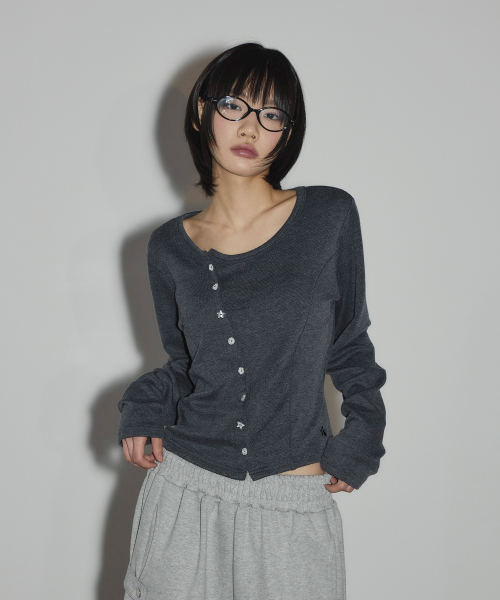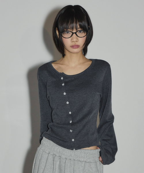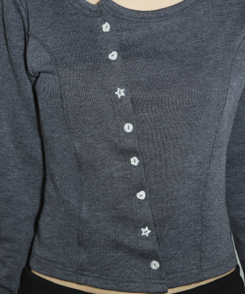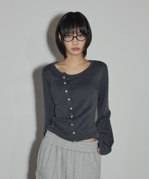 캔디 버튼 롱 슬리브 티셔츠[블랙]