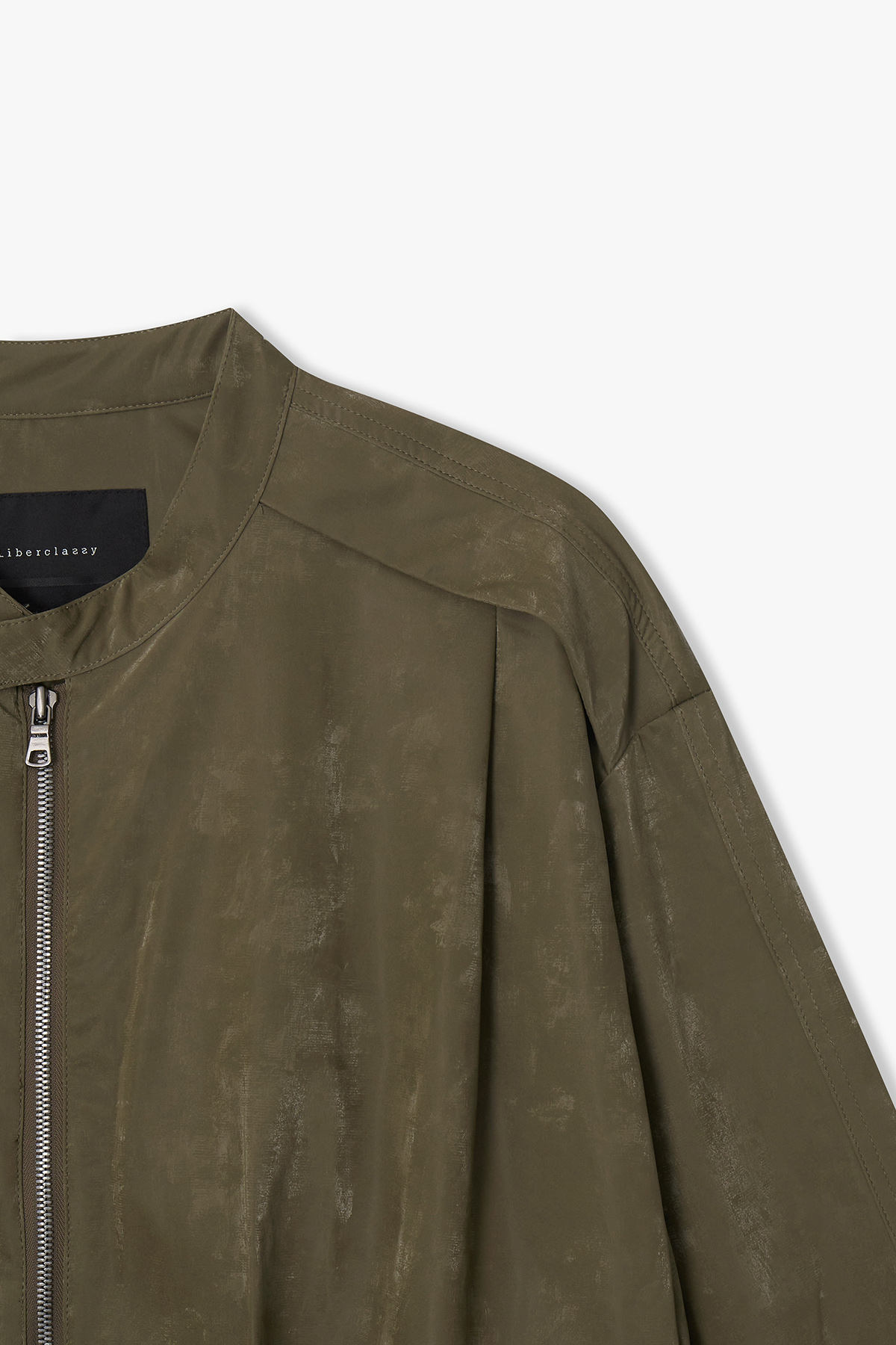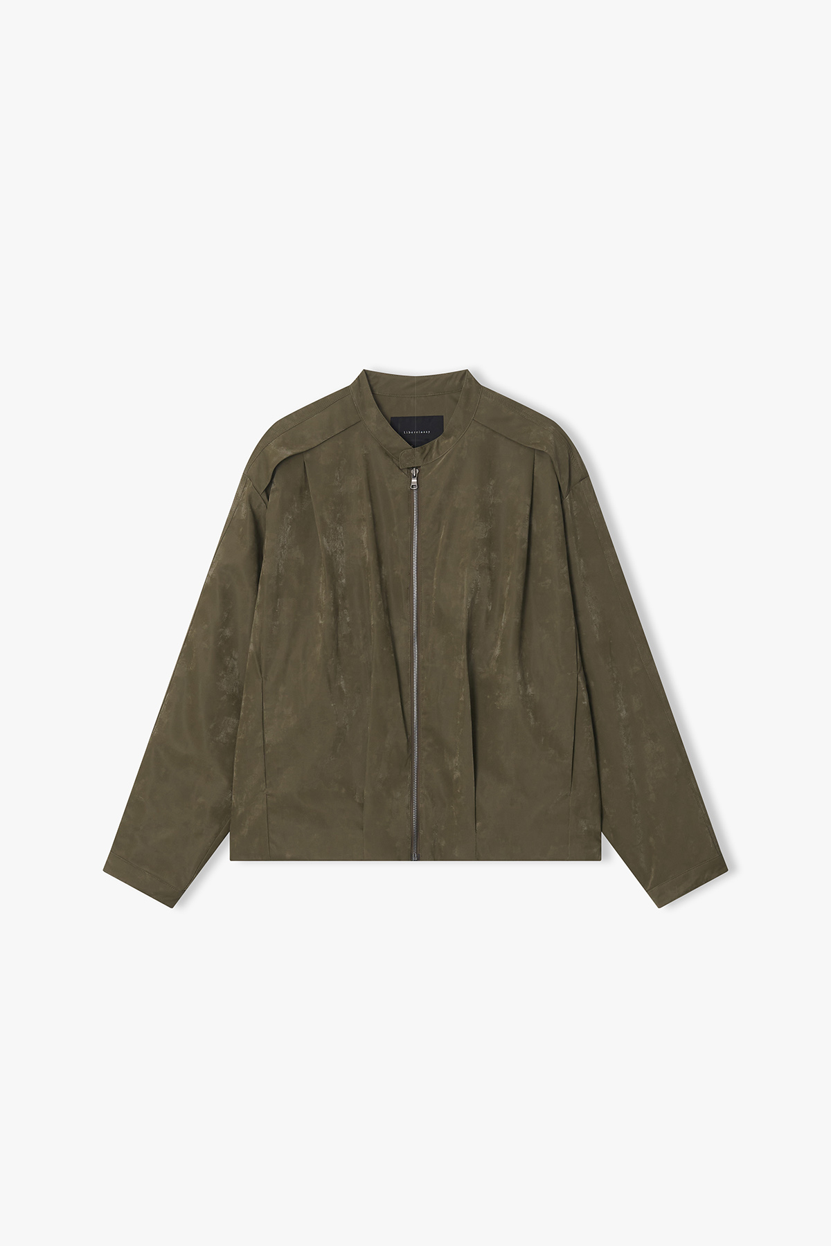 [26SS] LMS32701 카키 페이크 레더 플리츠 볼륨 점퍼
