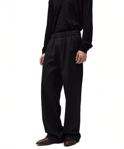 렌 코튼 플리츠 와이드 팬츠 블랙