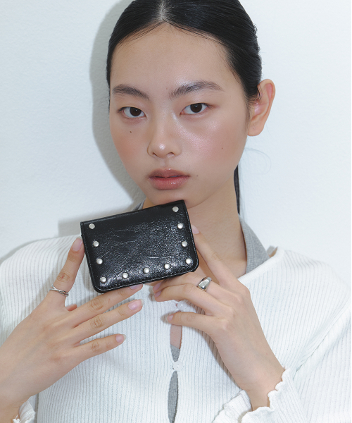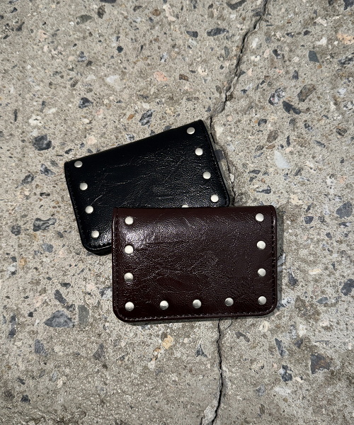 크랙 스터드 카드 월렛 - 블랙