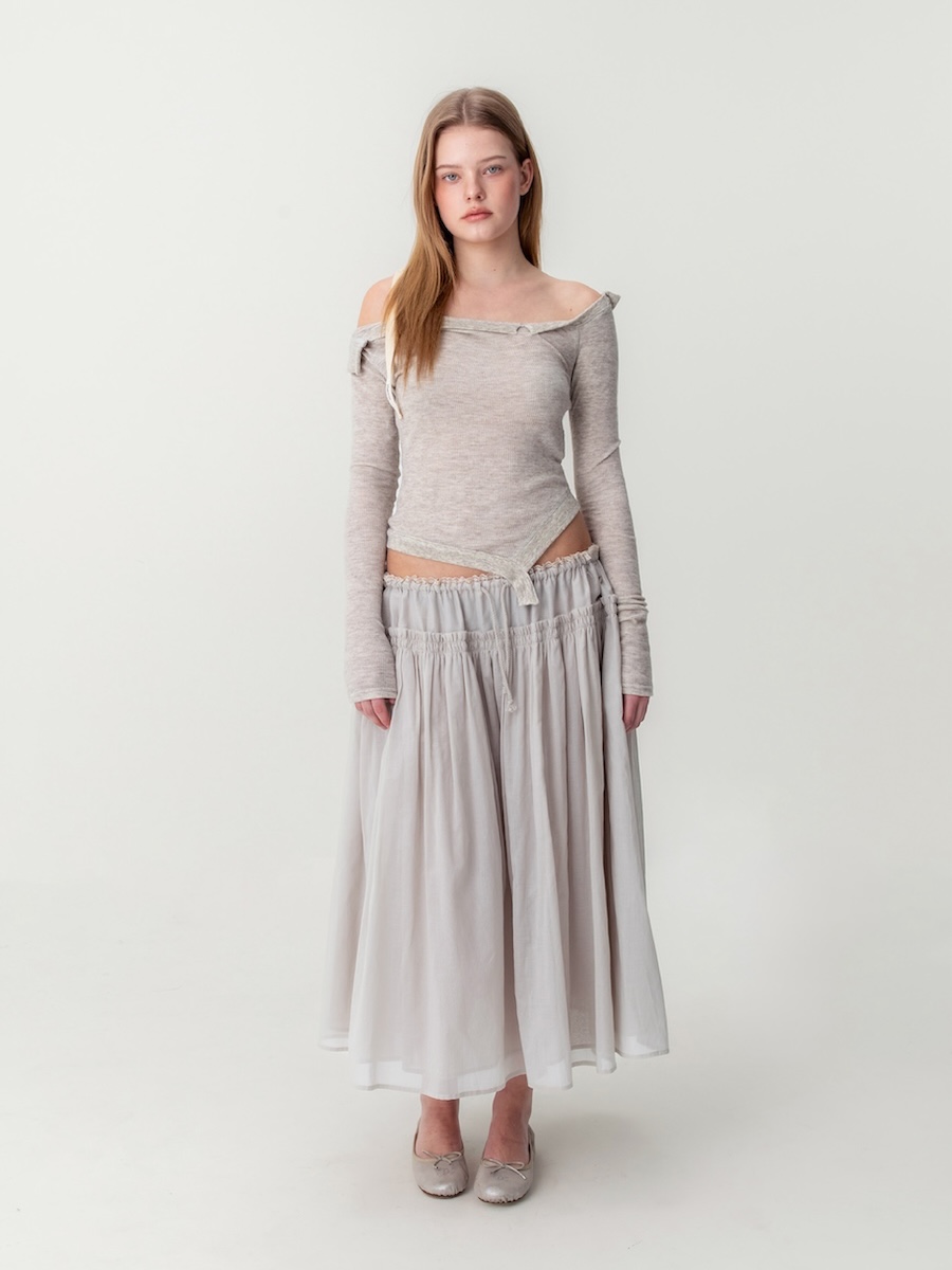 LACE STRING GATHERED LONG SKIRT (GRAY)