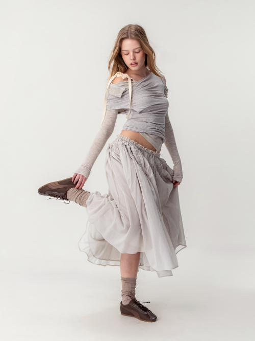 움직일 때마다 자연스럽게 흐르는 라인이 매력적인 아이템으로, 데일리부터 로맨틱한 스타일링까지 폭넓게 활용 가능합니다.