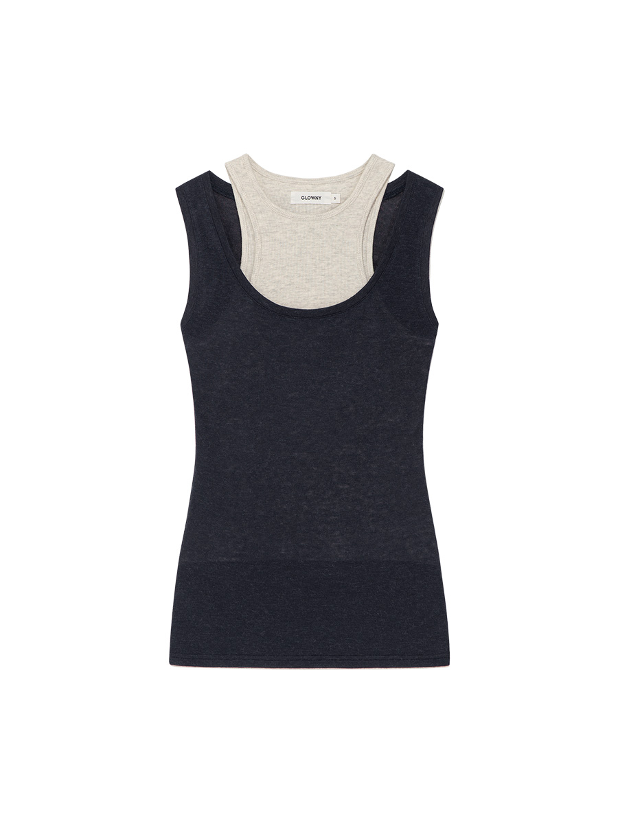 두 개의 나시를 겹쳐 입은 듯한 페이크 레이어드 디자인으로, 하나만 착용해도 완성도 있는 스타일을 연출할 수 있는 아이템입니다.