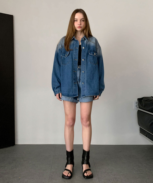 Oversized-fit Western Denim Shirt (2colors)