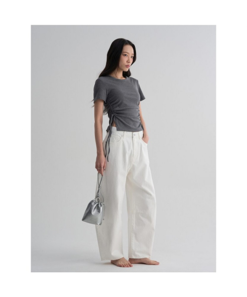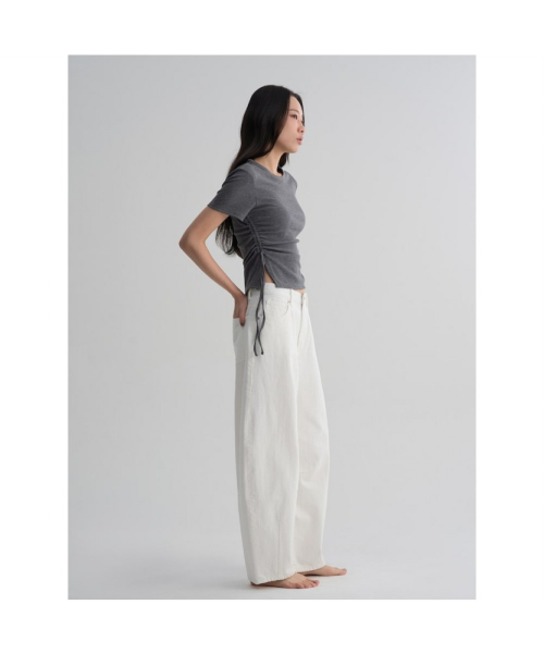 양옆의 셔링이 멋스러운 실루엣을 완성하는 반소매 티셔츠입니다. 스판이 혼용된 폴리 레이온 소재로 제작돼 편안하면서도 쾌적한 착용감을 선사합니다. 데일리룩에 잔잔한 포인트를 주기 좋은 아이템입니다.