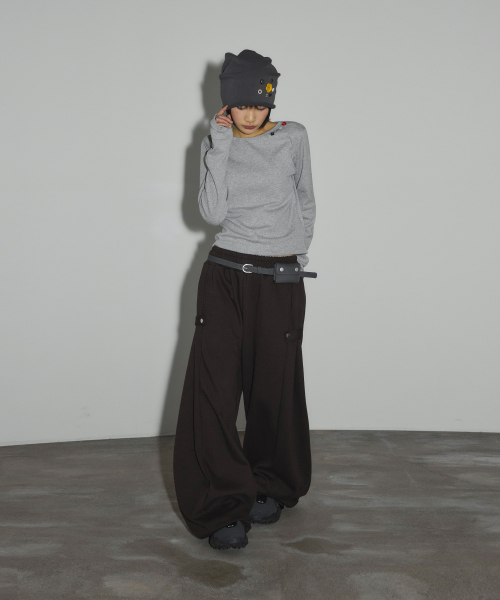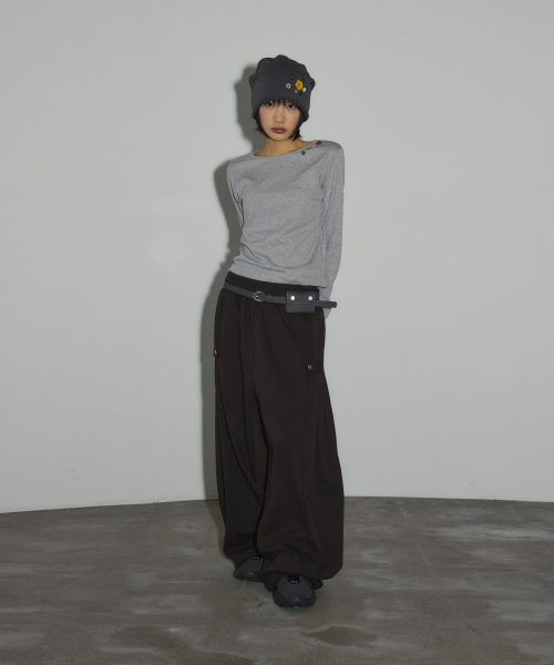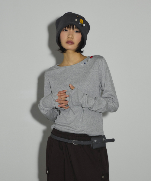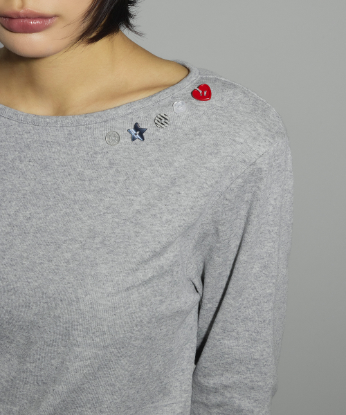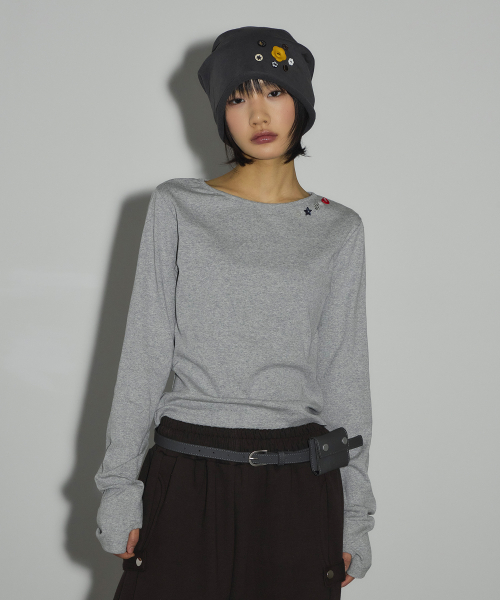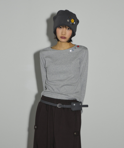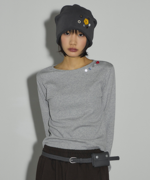 캔디 버튼 롱 슬리브 티셔츠[그레이]
