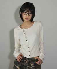 언발란스 버튼 니트 가디건[오트밀]