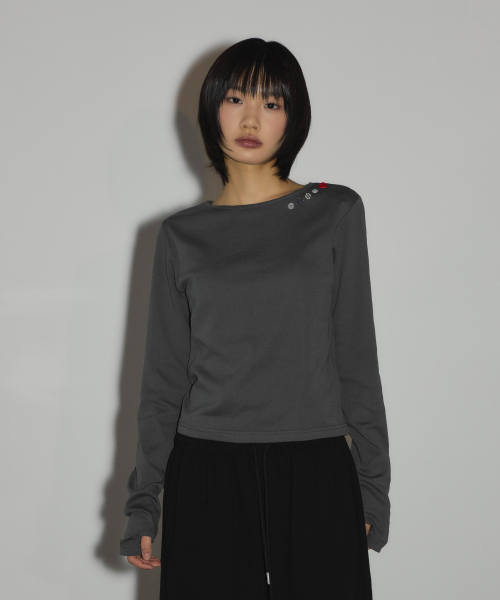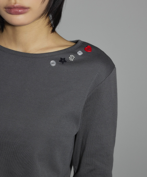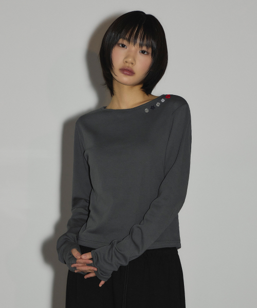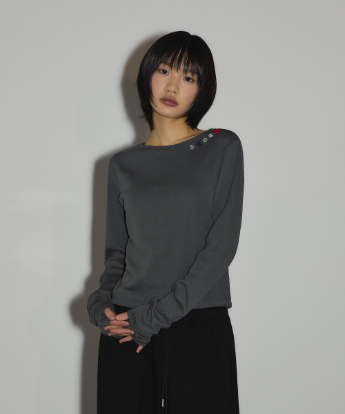 캔디 버튼 롱 슬리브 티셔츠[차콜]