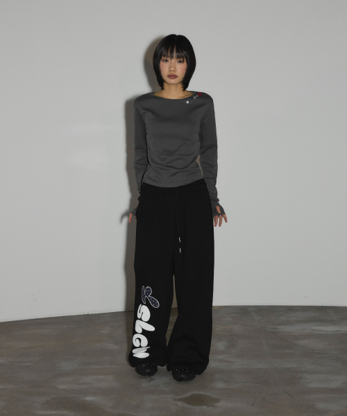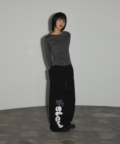 엔젤 아플리케 커브드 스웨트 팬츠[그레이]