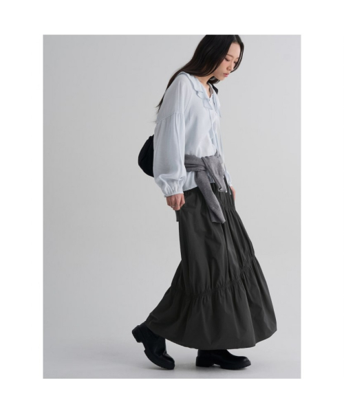 넥 라인에 물결치는 듯한 러플 디테일로 포인트를 준 블라우스입니다. 리본으로 묶어 연출하거나 풀어 입을 수 있어 다양한 스타일을 즐길 수 있습니다. 스웨터 위에 러플을 살짝 드러내어 레이어드하면 사랑스러운 분위기를 연출할 수 있습니다.