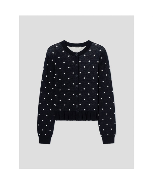 사랑스러운 도트 패턴이 돋보이는 카디건입니다. 레귤러 핏으로 편안하게 착용할 수 있으며, 도트 패턴이 자연스러운 포인트가 됩니다. 데님이나 슬랙스와는 캐주얼하게, 스커트와는 여성스러운 분위기로 어우러집니다.