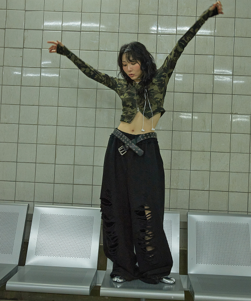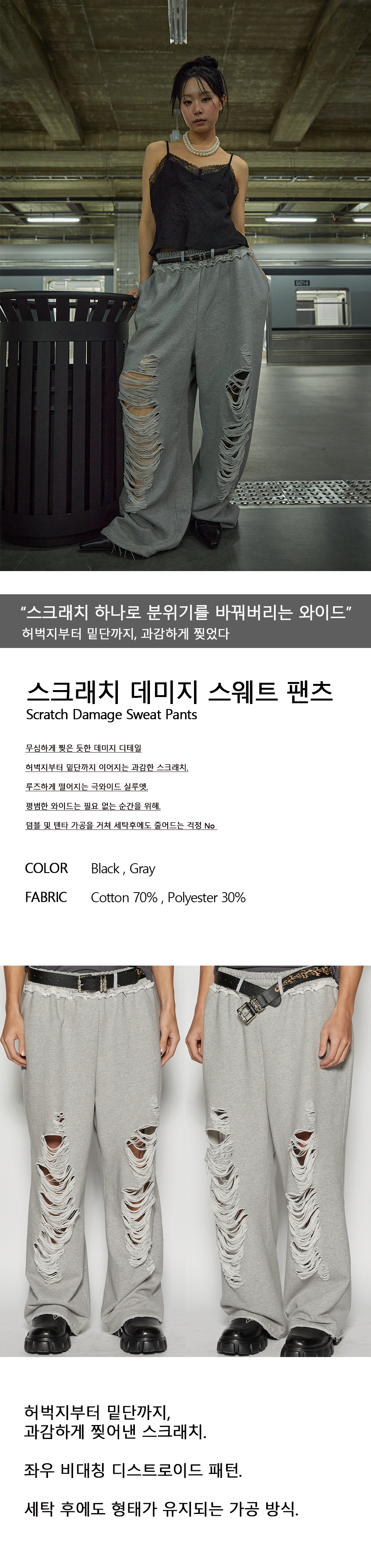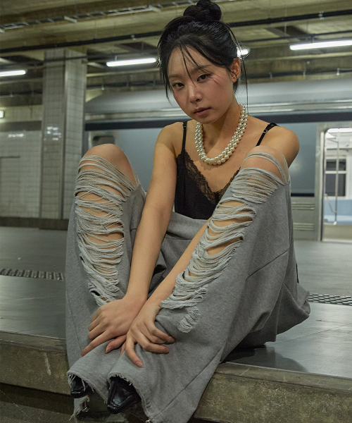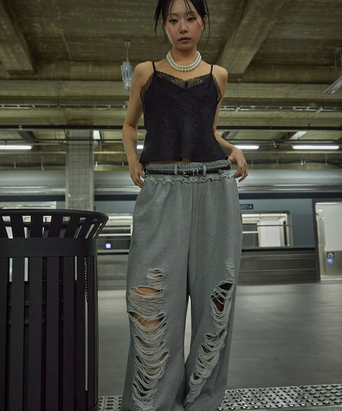 스크래치 데미지 스웨트 팬츠
