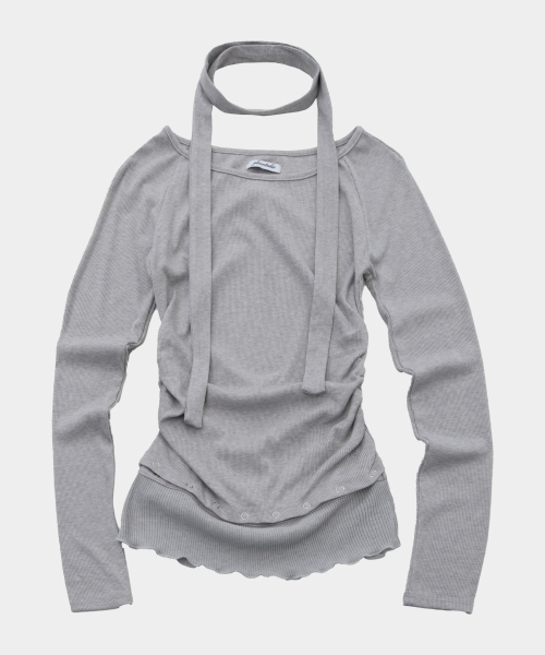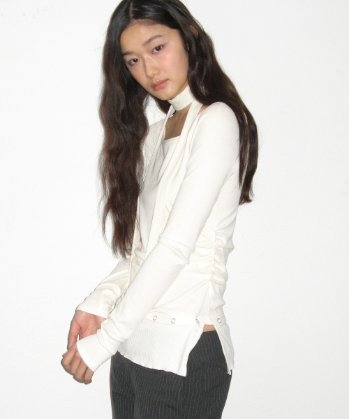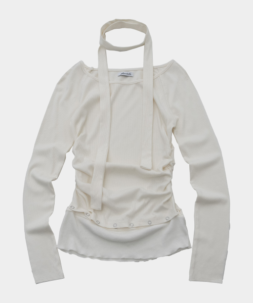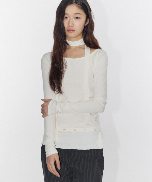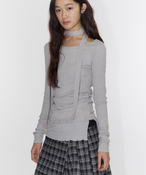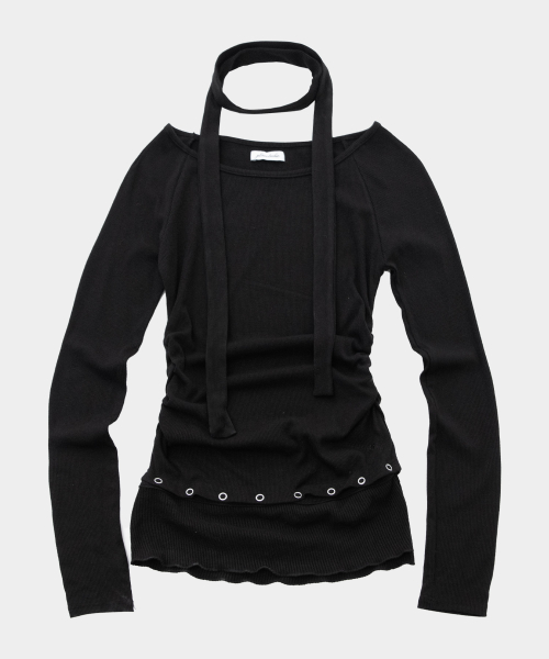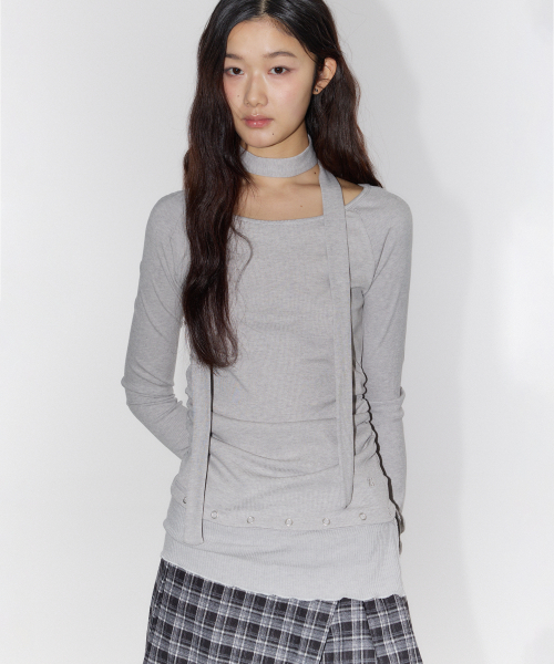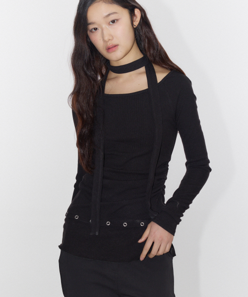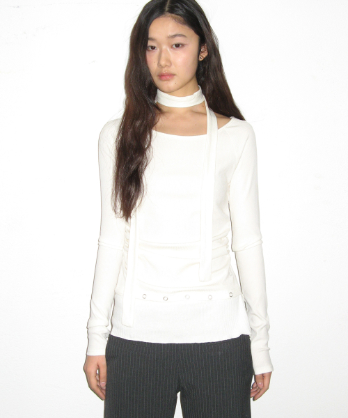 보트 유넥 탈부착 아일렛 배색 머플러 세트 롱슬리브 티셔츠 _3COLOR